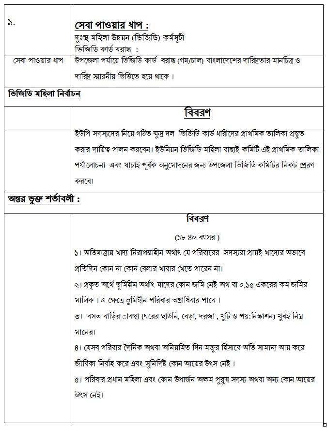 | ৭ | দুঃস্থ মহিলা উন্নয়ন (ভিজিডি)কর্মসূচি | দেখুন |